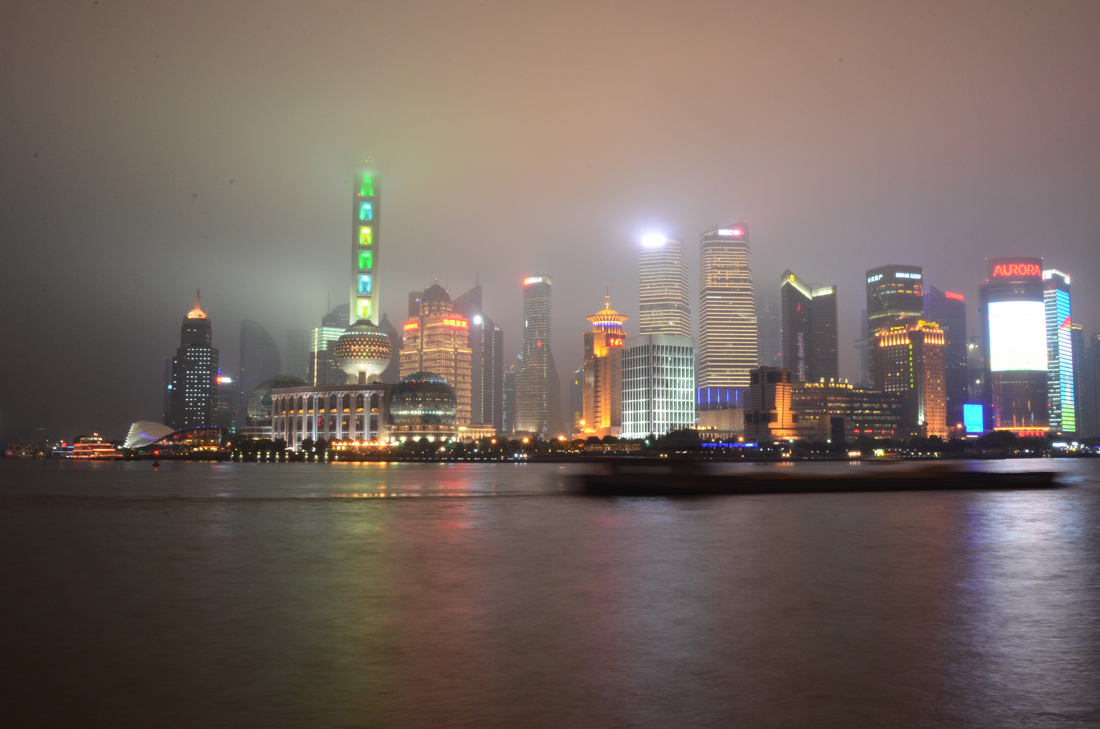 И наконец, финансовый центр города и один из финансовых центров Восточной Азии – район Пудонг. Эдакий Манхэттен Шанхая. Вот, общий вид на Пудонг из другой стороны реки Huangpu: